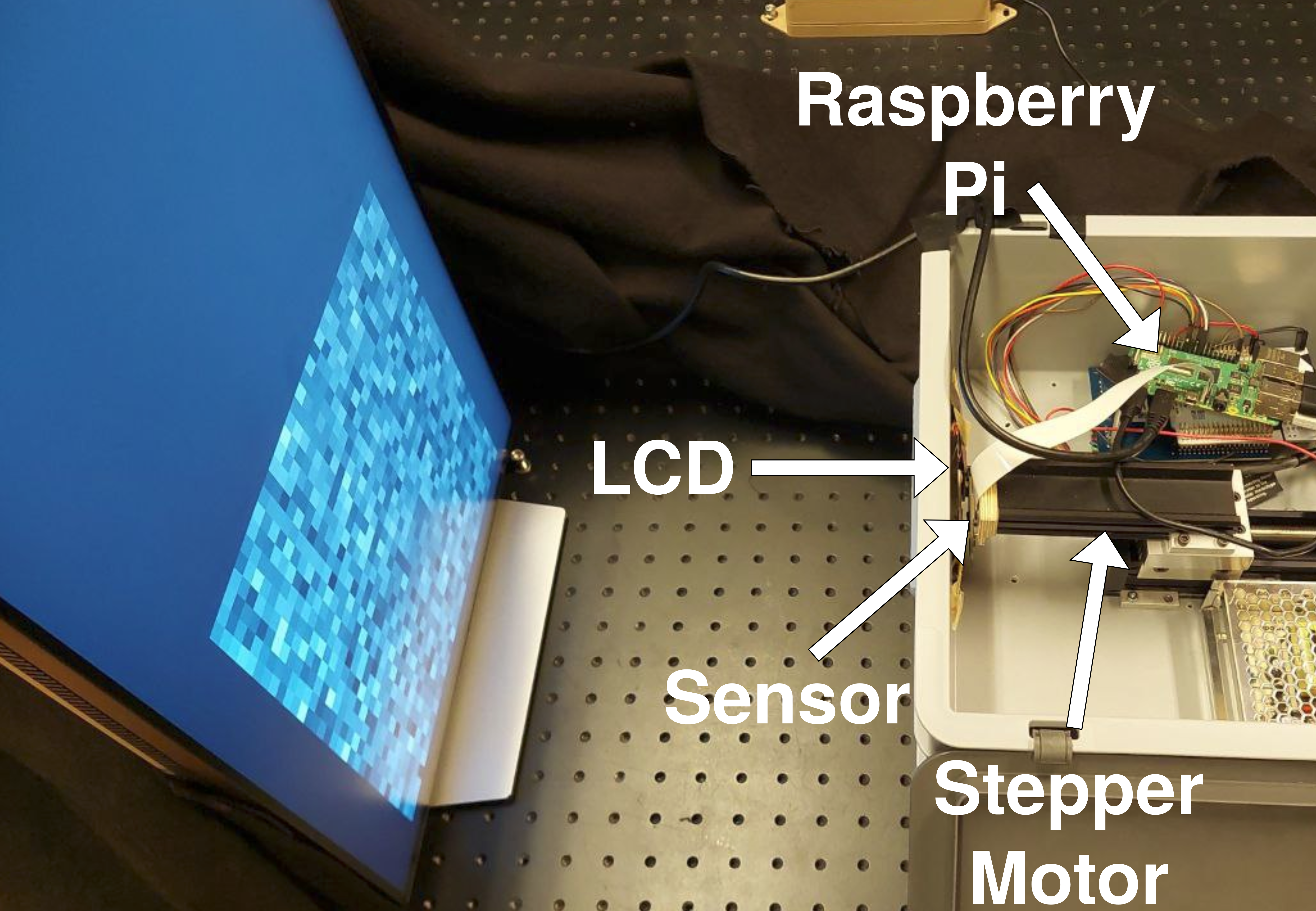 Our setup is based on DigiCam. We adapt it to show neural audio codec latent representation. During capture process, we cover the system with a black cloth to prevent external illumination.